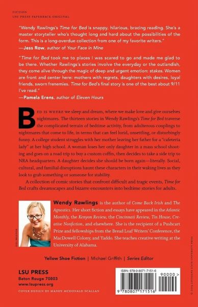 Bed is where we sleep and dream, where we make love and give ourselves nightmares. The thirteen stories in Wendy Rawlings's Time for Bed traverse the complicated terrain of bedtime activity, from adulterous couplings to nightmares that come to life, in terms that can feel lurid, unsettling, or disturbingly funny. A college student struggles with her mother leaving her father for a "cafeteria lady" at her high school. A woman loses her only daughter in a mass school shooting and goes on a road trip to buy a custom coffin, then decides to take a side trip to NRA headquarters. A daughter decides she should be born again--literally. Social, cultural, and familial disruption haunts these characters in their waking lives as they look to grab something or someone for stability. A collection of comic stories that confront difficult and tragic events, Time for Bed crafts dreamscapes and bizarre encounters into bedtime stories for adults.