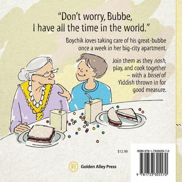 All the time in the world. That's what this 6-year-old boychick and his great-bubbe have for each other. Join their adventures in Bubbe's hi-rise city apartment as they nosh, play, reminisce, cook - and learn a bit of Yiddish along the way. Snuggle up and share this story with anyone you have all the time in the world for! Includes bonus Glossary of Yiddish Words and Bubbe's Recipe for the Best Noodle Kugel Ever