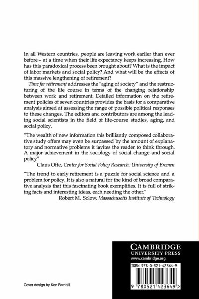 1. The changing balance of work and retirement Martin Kohli and Martin Rein; 2. The evolution of early exit: a comparative analysis of labor force participation patterns Klaus Jacobs, Martin Kohli and Martin Rein; 3. Testing the industry-mix hypothesis of early exit Klaus Jacobs, Martin Kohli and Martin Rein; 4. The Netherlands: an extreme case Bert de Vroom and Martin Blomsma; 5. France: massive exit through unemployment compensation Anne-Marie Guillemard; 6. Germany: The diversity of pathways Klaus Jacobs, Martin Kohli and Martin Rein; 7. Great Britain: The contradictions of early exit Frank Laczko and Chris Phillipson; 8. The United States: The privatization of exit Harold L. Sheppard; 9. Sweden: partial exit Eskil Wadensjö; 10. Hungary: exit from the state economy Julia Szalai; 11. Pathways and their prospects: a comparative interpretation of the meaning of early exit Anne-Marie Guillemard and Herman van Gunsteren; Index.