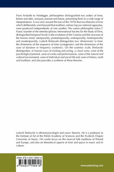 From Aristotle to Heidegger, philosophers distinguished two orders of time, before, after and past, present, future, presenting them in a wide range of interpretations. It was only around the turn of the 1970s that two theories of time which deliberately went beyond that tradition, enhancing our notional apparatus, were produced independently of one another. The nature philosopher Julius T. Fraser, founder of the interdisciplinary International Society for the Study of Time, distinguished temporal levels in the evolution of the Cosmos and the structure of the human mind: atemporality, prototemporality, eotemporality, biotemporality and nootemporality. The author of the book distinguishes two 'dimensions' in time: the dimension of the sequence of time (syntagmatic) and the dimension of the sizes of duration or frequency (systemic). On the systemic scale, the author distinguishes, in human ways of existing and acting, a visual zone, zone of the psychological present, zone of works and performances, zone of the natural and cultural environment, zone of individual and social life and zone of history, myth and tradition. In this book, the author provides a synthesis of these theories.