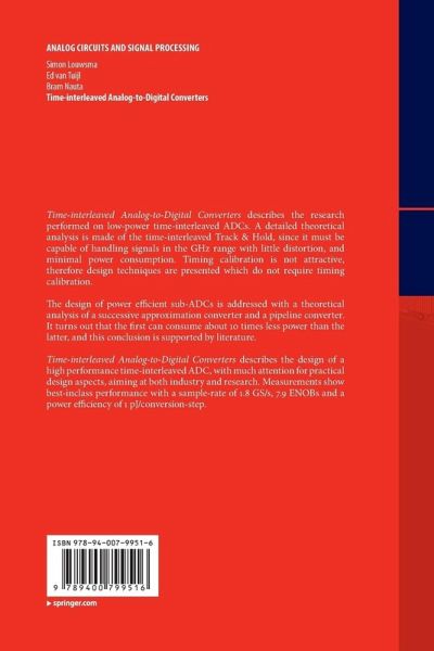 Time-interleaved Analog-to-Digital Converters describes the design of a high performance time-interleaved ADC, with much attention for practical design aspects, aiming at both industry and research. Measurements show best-inclass performance with a sample-rate of 1.8 GS/s, 7.9 ENOBs and a power efficiency of 1 pJ/conversion-step.