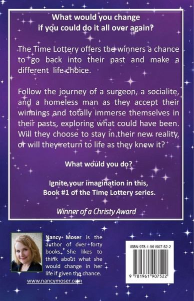 What would you change if you could do it all over again? The annual Time Lottery offers its winners a chance to go back into their past and make a different life choice, exploring the what-if questions that plague them. Follow the journey of a surgeon, a socialite, and a homeless man as they accept their winnings and totally immerse themselves in their pasts, exploring what could have been. Will they choose to stay in their new reality, or will they return to life as they knew it? What would you do? Ignite your imagination in this, Book #1 of the Time Lottery series. Winner of the Christy Award Continue the series with three more winners of the Time Lottery in "Second Time Around."