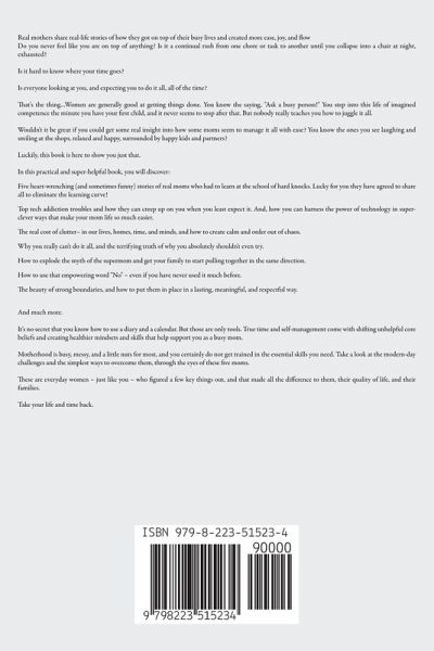 Real mothers share real-life stories of how they got on top of their busy lives and created more ease, joy, and flow Do you never feel like you are on top of anything? Is it a continual rush from one chore or task to another until you collapse into a chair at night, exhausted? Is it hard to know where your time goes? Is everyone looking at you, and expecting you to do it all, all of the time? That's the thing…Women are generally good at getting things done. You know the saying, "Ask a busy person!" You step into this life of imagined competence the minute you have your first child, and it never seems to stop after that. But nobody really teaches you how to juggle it all. Wouldn't it be great if you could get some real insight into how some moms seem to manage it all with ease? You know the ones you see laughing and smiling at the shops, relaxed and happy, surrounded by happy kids and partners? Luckily, this book is here to show you just that. In this practical and super-helpful book, you will discover: Five heart-wrenching (and sometimes funny) stories of real moms who had to learn at the school of hard knocks. Lucky for you they have agreed to share all to eliminate the learning curve! Top tech addiction troubles and how they can creep up on you when you least expect it. And, how you can harness the power of technology in super-clever ways that make your mom life so much easier. The real cost of clutter– in our lives, homes, time, and minds, and how to create calm and order out of chaos. Why you really can't do it all, and the terrifying truth of why you absolutely shouldn't even try. How to explode the myth of the supermom and get your family to start pulling together in the same direction. How to use that empowering word "No" – even if you have never used it much before. The beauty of strong boundaries, and how to put them in place in a lasting, meaningful, and respectful way. And much more. It's no secret that you know how to use a diary and a calendar. But those are only tools. True time and self-management come with shifting unhelpful core beliefs and creating healthier mindsets and skills that help support you as a busy mom. Motherhood is busy, messy, and a little nuts for most, and you certainly do not get trained in the essential skills you need. Take a look at the modern-day challenges and the simplest ways to overcome them, through the eyes of these five moms. These are everyday women – just like you – who figured a few key things out, and that made all the difference to them, their quality of life, and their families. Take your life and time back.