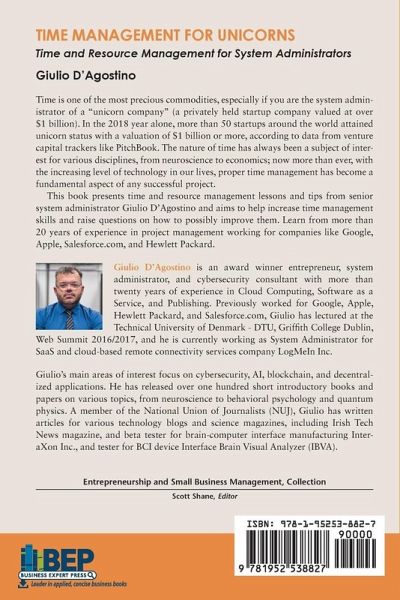 This book presents time and resource management lessons and tips from senior system administrator Giulio D'Agostino and aims to help increase time management skills and raise questions on how to possibly improve them. Time is one of the most precious commodities, especially if you are the system administrator of a ''unicorn company'' (a privately held startup company valued at over $1 billion). In the 2018 year alone, more than 50 startups around the world attained unicorn status with a valuation of $1 billion or more, according to data from venture capital trackers like PitchBook. The nature of time has always been a subject of interest for various disciplines, from neuroscience to economics; now more than ever, with the increasing level of technology in our lives, proper time management has become a fundamental aspect of any successful project. This book presents time and resource management lessons and tips from senior system administrator Giulio D'Agostino and aims to help increase time management skills and raise questions on how to possibly improve them. Learn from more than 20 years of experience in project management working for companies like Google, Apple, Salesforce.com, and Hewlett Packard.