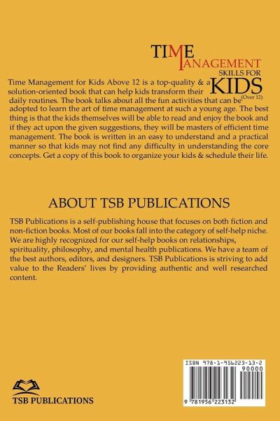 Are you a kid belonging to an age group of 12 years or more? Do you find it hard to manage time and daily routines effectively? Do you want to learn about the art of time management? If yes is your answer to these queries, you are at the right place as this book can help you transform your daily routines teaching you the art of time management. Everyone struggles with time management, but kids struggle with it the most. At their age, it is expected that kids will be autonomous and have the skills necessary to complete tasks on their own. However, children are occupied than ever. Kids frequently discover that their schedule isn't really their own because of their schoolwork, extracurricular activities, families, friends, and other obligations. Maybe it's a little unreasonable for parents to assume their kids to have a natural ability to organize their time, especially given that they frequently lack the resources to do so. This book is an effort to train all such kids who are finding it hard to manage their daily routines as far as effective time management is concerned. This user-friendly guide is filled with best practice suggestions for assisting kids in managing their use of technology, staying on top of their work, avoiding procrastinating traps, and getting out each morning with the least amount of tension. The main highlight of the book is that it is an activity-based book so that kids may show a higher level of interest. On reading the book in detail, kids will be able to learn about:Importance of Time Management Making a Weekly Planner Getting Rid of Procrastination Art of Setting Goals Following a Bed-Time Routine If you find these contents helpful, now is the time to place your order by visiting Amazon. Click the link below and get your hands on this solution-oriented book.
