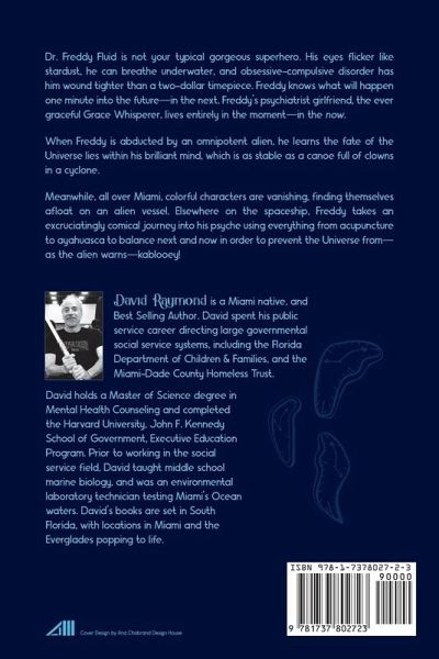 From best-selling author, David Raymond- Dr. Freddy Fluid is not your typical gorgeous superhero. His eyes flicker like stardust, he can breathe underwater, and obsessive-compulsive disorder has him wound tighter than a two-dollar timepiece. Freddy knows what will happen one minute into the future-in the next. Freddy's psychiatrist girlfriend, the ever graceful Grace Whisperer, lives entirely in the moment-in the now. When Freddy is abducted by an omnipotent alien, he learns the fate of the Universe lies within his brilliant mind, which is as stable as a canoe full of clowns in a cyclone. Meanwhile, all over Miami, colorful characters are vanishing, finding themselves afloat on an alien vessel. Elsewhere on the spaceship, Freddy takes an excruciatingly comical journey into his psyche using everything from acupuncture to ayahuasca to balance next and now in order to prevent the Universe from-as the alien warns-kablooey!