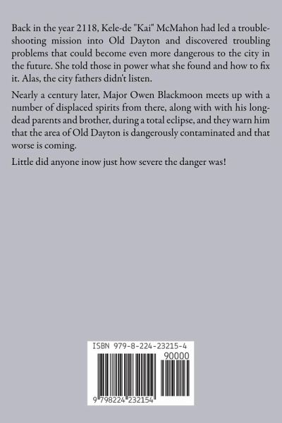 Back in the year 2118, Kele-de "Kai" McMahon had led a trouble-shooting mission into Old Dayton and discovered troubling problems that could become even more dangerous to the city in the future. She told those in power what she found and how to fix it. Alas, the city fathers didn't listen. Nearly a century later, Major Owen Blackmoon meets up with a number of displaced spirits from there, along with with his long-dead parents and brother, during a total eclipse, and they warn him that the area of Old Dayton is dangerously contaminated and that worse is coming. Little did anyone inow just how severe the danger was!