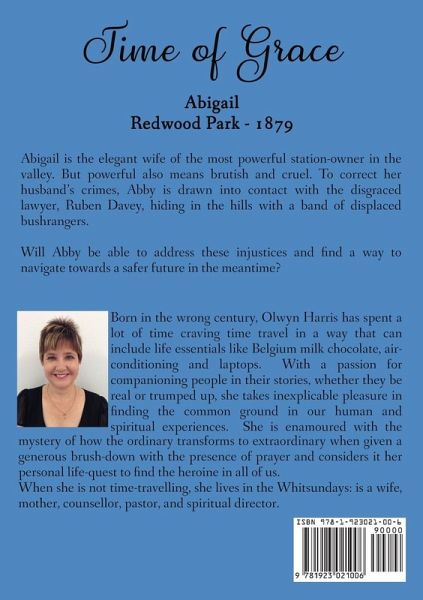 In true Olwyn Harris style, this first book in the 'Pioneers of Grace' series takes us on a journey to the early days of settlement in Australia. Here we meet Abigail, the wife of the most powerful property owner in the district. She is the envy of those on the outside, but fashionable clothes and carefully applied makeup hide a darker secret, and his brutality is not only directed at her. To correct her husband's crimes, Abby is drawn into contact with the disgraced lawyer, Ruben Davey, hiding in the hills with a band of displaced bushrangers. Will Abby be able to address these injustices and find a way to navigate towards a safer future in the meantime?