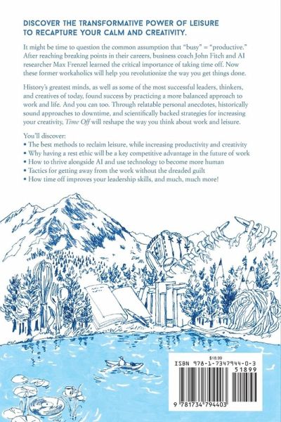 Discover the transformative power of leisure to recapture your calm and creativity. We live in a time where busyness is often seen as a badge of honor. But are your busiest days really the ones that make you feel the most accomplished? If all of your hard work isn't working, it might be time to question the common assumption that "busy" = "productive." After reaching breaking points in their careers, business coach John Fitch and AI researcher Max Frenzel both learned the critical importance of taking time off. Now these former workaholics are here to help you revolutionize the way you get things done. Time Off: A Practical Guide to Building Your Rest Ethic and Finding Success Without the Stress reveals how history's greatest minds, as well as some of the most successful leaders, thinkers, and creatives of today, found success by practicing a more balanced approach to work and life. Embracing their insights on how constant hustle can be your worst enemy, you will realize that time off means much more than just taking a break. By learning how to slow down, you will rediscover a more fulfilled and versatile version of yourself and unlock your true creative potential.In Time Off, you'll discover:The most effective methods to reclaim leisure, while increasing productivity and creativity Why your work ethic needs to be supported by an equally solid rest ethic Tactics for getting away from the work without the dreaded guilt Why time off and leisure will be key competitive advantages in the future of work How to thrive alongside AI and use technology to become more human The many ways in which time off improves your leadership skills, and much, much more! Reshaping the way you think about work and leisure, Time Off is a reinvigorating guide to doing more by laboring less. If you like relatable personal anecdotes, historically-sound approaches to downtime, and scientifically-backed strategies for increasing your creativity, then you'll love John Fitch and Max Frenzel's life-changing resource. Get Time Off - for yourself or as a gift to the busy people in your life - as a healthy reminder to put down the busywork and pick up what actually matters most to you.