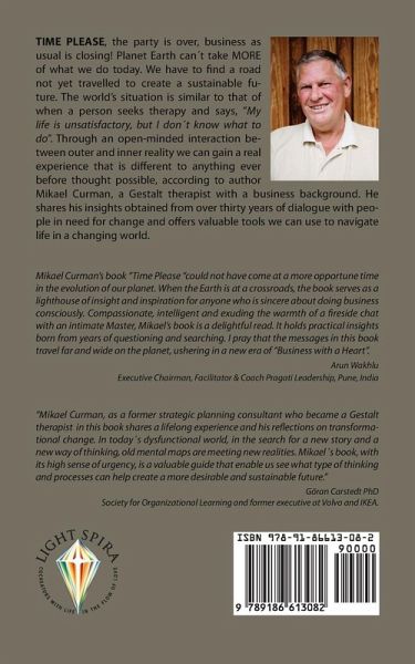 TIME PLEASE, the party is over, business as usual is closing! Planet Earth can¿t take MORE of what we do today. We have to find a road not yet travelled to create a sustainable future. The world's situation is similar to that of when a person seeks therapy and says, "My life is unsatisfactory, but I don¿t know what to do". Through an open-minded interaction between outer and inner reality we can gain a real experience that is different to anything ever before thought possible, according to author Mikael Curman, a Gestalt therapist with a business background. He shares his insights obtained from over thirty years of dialogue with people in need for change and offers valuable tools we can use to navigate life in a changing world.