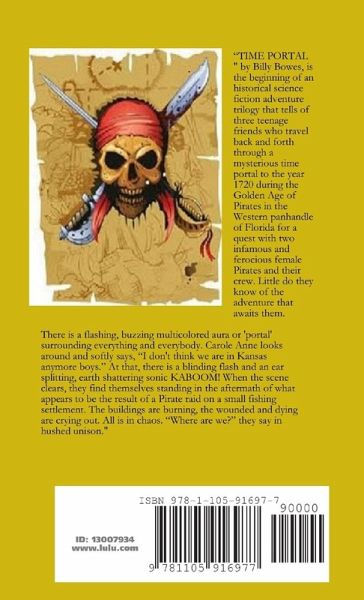"TIME PORTAL" by Billy Bowes, is the beginning of an historical science fiction adventure trilogy that tells of three teenage friends who travel back and forth through a mysterious time portal to the year 1720 during the Golden Age of Pirates in the Western panhandle of Florida for a quest with two infamous and ferocious female Pirates and their crew. Little do they know of the adventure that awaits them.