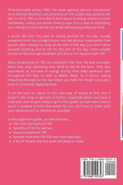 Discover the groundbreaking approach that's revolutionizing the way we think about eating and weight loss. Time-Restricted Eating (TRE) isn't just another diet - it's a lifestyle change that can transform your relationship with food and help you achieve your health goals without the hassle of calorie counting or food group restrictions. Since the BBC documentary by Michael Mosley in 2013, TRE has gained momentum worldwide. It's all about scheduling your meals strategically to maximize fat loss while indulging in delicious, satisfying foods. Here's how it works: you select a daily eating window, typically spanning four to eight hours, during which you enjoy all your meals. Once your eating window closes, you abstain from consuming anything until the next day. While some opt to skip breakfast, it's not a requirement with TRE. Transitioning to this novel way of eating may seem challenging initially, but with the right guidance and meal plans, you'll quickly find your rhythm. Our beginner's guide is your comprehensive resource, helping you navigate: - The fundamental principles of TRE. - Tailored benefits of TRE for women. - Easy-to-follow steps to implement TRE successfully. - Sample meal plans for both full and restricted eating days. - A collection of quick and delectable recipes to keep your journey flavorful. Embark on a transformative journey towards a healthier, fitter you with the power of Time-Restricted Eating. This guide will equip you with the knowledge and tools to embrace a new way of eating that suits your lifestyle and yields impressive results. Say goodbye to dieting frustrations and hello to a sustainable path to wellness.