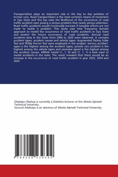 Transportation plays an important role in the day to day activities of human race. Road transportation is the most common means of movement in Oyo State and this has raise the likelihood of the occurrence of road traffic accident even posing a serious problem that needs serious attention. Road traffic accidents would Continually increase if tangible efforts are not made to tackle is problem. This study uses time frequency domain approach to model the occurrence of road traffic accidents in Oyo State and predict the future occurrence of road accidents. Annual road accidents data in the State from 2006 to 2020 were observed. It contains accident types, accident causes and vehicle types. Augmented Dickey Fuller Test and Phillip Perron Test were employed in the analysis. Serious accident types is the highest among the accident types, private cars accident is the highest among the vehicle types and excessive speed is the highest among the accident causes. ARIMA model (1, 1, 0) and (1,1, 1) is best used to model accidents in the state. The result revealed that there would be an increase in the occurrence of road traffic accident in year 2023, 2024 and 2025.