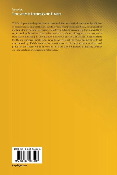 1. Introduction.- I. Subject of Time Series.- 2. Random Processes.- II. Decomposition of Economic Time Series.- 3. Trend.- 4. Seasonality and Periodicity.- 5. Residual Component.- III. Autocorrelation Methods for Univariate Time Series.- 6. Box-Jenkins Methodology.- 7. Autocorrelation Methods in Regression Models.- IV. Financial Time Series.- 8. Volatility of Financial Time Series.- 9. Other Methods for Financial Time Series.- 10. Models of Development of Financial Assets.- 11. Value at Risk.- V. Multivariate Time Series.- 12. Methods for Multivariate Time Series.- 13. Multivariate Volatility Modeling.- 14. State Space Models of Time Series.- References.- Index.