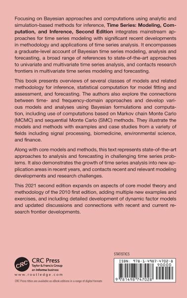 This is the second edition of a popular graduate level textbook on time series modeling, computation and inference. The book is essentially unique in its approach, with a focus on Bayesian methods, although classical methods are also covered.