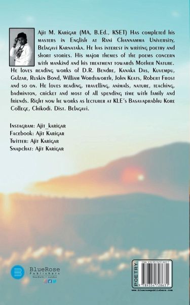 Deploring the gross materialism of the modern men, who have been ruining natural resources ruthlessly the poet implores earnestly to save the same for the generations to come to rid of their curse and to earn their bliss. Young poet Mr. Ajit's adoration of human values and virtues, issuance of clarion call and earnest appeal to the present day youth to develop rational and scientific approach to the festivities speaks volumes about his love of humanity. Celebration of mother's affection, feeling of pride for motherland, appreciation of the beauty and greatness of Mother Earth are the stock- in trade of his poetic utterances. Good manners are good basis of good life goes an adage. It is good manners and etiquettes that bring dignity to humans who are the dazzling jewels in the crown of God's creation. Hence the poet holds high several mannerisms in host of his poems. His fervent wish and ardent hope to usher in better and beautiful prospective world are the flora and fauna of this poetic creations. Let this budding, sensitive, sensible poet scale a lofty literary height and succeed in his endeavor to convey his tender passions genuinely through poetry to increase the happiness of readers.
