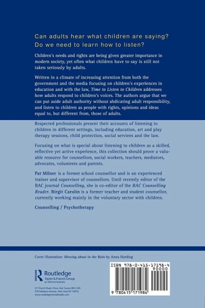 Time to Listen to Children is a practical guide to effective communication with children. Professionals working with children in a variety of settings examine the skills required to help children articulate their problems and feelings. They discuss issues such as training, cultural background and religion and give accounts of their work in the following settings: * education * social services * voluntary organizations * medical settings * law Contributors practice a variety of therapeutic techniques, including play, music and art therapy. Time to Listen to Children will be a valuable resource for social workers, teachers and counsellors in training and for all professionals who wish to adopt a skilled, reflective and active approach to their work with children.
