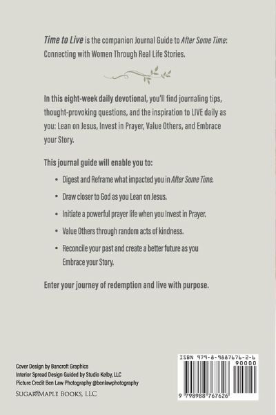 Time to LIVE is the companion Journal Guide to After Some Time: Connecting with Women Through Real Life Stories. In this eight-week daily devotional, you'll find journaling tips, thought-provoking questions, and the inspiration to LIVE daily as you: Lean on Jesus - Invest in Prayer - Value Others - Embrace your Story. This journal guide will enable you to: Digest and Reframe what impacted you in After Some Time. Draw closer to God as you Lean on Jesus. Initiate a powerful prayer life when you Invest in Prayer. Value Others through random acts of kindness. Reconcile your past and create a better future as you Embrace your Story. Enter your journey of redemption and LIVE with purpose.