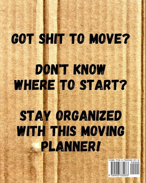 TIME TO MOVE MY SHIT! Got shit to move? Don't know where to start? Stay organized with this moving planner! Moving Planner 8 X 10 Inches 90 Pages of Fillable Prompts Are you moving to a new home? We understand it is such an overwhelming task to plan everything before you move. Moving is like starting on a new life in a new place that is far from what you have considered your home. But it may not be as difficult as many would say. In the course of planning to move, there are a lot of hard decisions to make and preparations to do. If you have not organized your move well, you will be faced with headaches that will take a long time to overcome. This moving journal was created to help with all parts of the packing and organizing process. Careful packing does minimize the risk of things being broken, but one of the only ways to actually ensure that you have no breakages whilst moving is to take them with you, or, if hiring a firm, allowing them to pack. If you're selling your house, you have to do several things to ensure its ready for a smooth and easy sale. You can hire an estate agent, interior stager or complete sales teams to sell your house - or you can do it yourself. If you're moving up the street or across the country, this little cute moving journal will make your life much easier. Do you need a moving notebook to keep all things pertaining to your move in one place? A moving journal that keeps you on track to do things that you wouldn't have thought to do. Well, this is the notebook you need! In this Moving Planner you have: Moving From Moving To Moving Companies Moving Checklist-2 Months Before Moving Checklist-6 Weeks Before Moving Checklist-One Month Moving Checklist-2 Weeks Moving Checklist-3 Days On The Day of the Move Moving Instructions Furniture/Boxes Floor Plan Grid Packing Contents Label Boxes Things To Sell If you are looking for gifts for a friend who is moving or gifts for anyone who is moving away, then this will make a great gift for them. Give this as a moving away gift! There are so many things to do and take care of and its quite easy to forget many things. This House moving checklist notebook will help you to organize everything when you decide to move. This Time To Move My Shit Moving Planner will really make your life easy if you are planning to move soon. Enjoy!