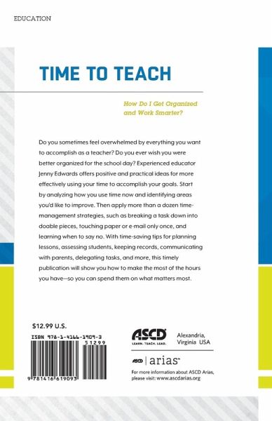Because you've got way more problems on your plate than you've ever had to deal with before, you need the tips from this ASCD Arias publication to help you get more done in less time. Rather than just reciting generic advice, teacher and education professor Jenny Edwards gives you more than a dozen strategies to Break down tasks into doable pieces. Touch each paper or e-mail communication only once. Learn when to say no. Use time-management apps to zip through reams of paperwork. Discover how to compress into minutes the many hours you spend planning lessons, assessing students, keeping records, and communicating with parents.