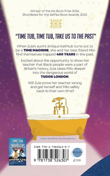 Join Zula and Milo on a thrilling time-travel adventure as they find themselves unexpectedly stuck in the dangerous world of Tudor London on the trail of a mysterious silk thief. This award winning, fast-paced book is perfect for bringing Black British history to life, even for kids who don't enjoy history. When Zula's aunt's antique bathtub turns out to be a Time Machine, she and her best friend Milo find themselves trapped 400 years in the past. Excited at the chance to show her history teacher, that there are Black people in Britain's past, she pulls Milo deeper and deeper into the dangerous world of Tudor London. History is about to get real in ways Zula never imagined. Will Zula prove her teacher wrong and get herself and Milo safely back to their own time? Awards Selfies Book Awards 2025: Highly Commended Ink Book Prize 2024: Winner of Best Debut Novel Praise for Time Tub Travellers "Fast -paced, funny, informative and fresh." Ian Eagleton (author of Glitter Boy) "A fantastically well-imagined, fast-paced and hilarious novel for young readers...offering an all-important glimpse into the crucial, yet often lesser-known, melting point of Black and British history." P.A. Staff (author of Casander Darkbloom and the Threads of Power) 'I was on the edge of my seat' - Sreya, age 10 'Great characters and a gripping plot' - Adam, age 11