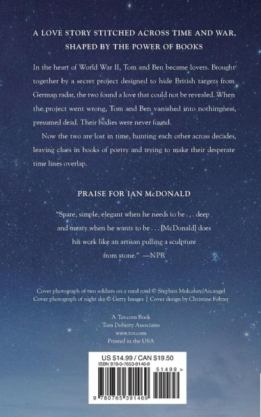 Ian McDonald weaves a love story across an endless expanse with his science fiction novella Time Was A love story stitched across time and war, shaped by the power of books, and ultimately destroyed by it. In the heart of World War II, Tom and Ben became lovers. Brought together by a secret project designed to hide British targets from German radar, the two founded a love that could not be revealed. When the project went wrong, Tom and Ben vanished into nothingness, presumed dead. Their bodies were never found. Now the two are lost in time, hunting each other across decades, leaving clues in books of poetry and trying to make their desperate timelines overlap.