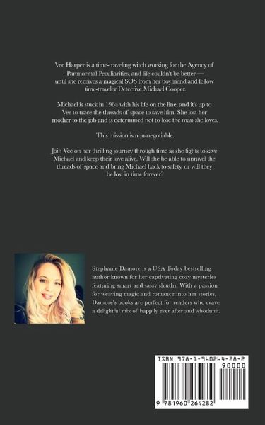 Vee Harper is a time-traveling witch working for the Agency of Paranormal Peculiarities, and life couldn't be better-until she receives a magical SOS from her boyfriend and fellow time-traveler Detective Michael Cooper. Michael is stuck in 1964 with his life on the line, and it's up to Vee to trace the threads of space to save him. She lost her mother to the job and is determined not to lose the love of her life. This mission is non-negotiable. Join Vee on her thrilling journey through time as she fights to save Michael and keep their love alive. Will she be able to unravel the threads of space and bring Michael back to safety, or will they be lost in time forever?