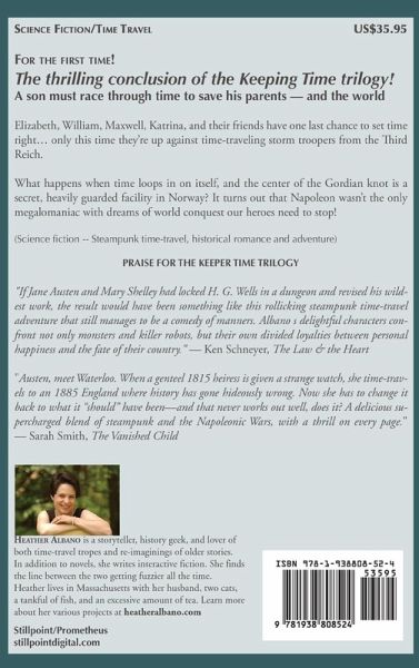 The thrilling conclusion of the Keeping Time trilogy! A diva, a crime lord, a resistance fighter, a bohemian — who will she be this time? Katrina, Maxwell, Elizabeth, William, and their comrades have one last chance to set time right… only this time they’re up against time-traveling storm troopers from the Third Reich. What happens when time loops in on itself, and the center of the Gordian knot is a secret, heavily guarded facility in Norway? It turns out that Napoleon wasn’t the only megalomaniac with dreams of world conquest our heroes need to stop! COMING November 22, 2018! (Science fiction Steampunk time-travel, historical romance and adventure) Extract: Exasperated, Maxwell picked up letter and bag together, and the loose drawstring mouth opened, dumping the contents literally into his lap. He had time to think, The last damned thing I want is my father’s watch— Then he got a good look at it. And nothing was ever the same again. One could not be indifferent when one held in one’s hands an object that could not possibly exist. Instead of one face, it had four, two crowded on one side and two on another. One of these looked like it might actually tell time, though it was not doing so at present. The second had both an inner and outer dial, with numbers running all around it. The third was even more complicated, comprised of eight dials nesting within each other. These had numbers as well, ones significant enough that they immediately jumped to his attention: 0, 2, 1, 1, 1, 8, 1, 9. The second of November, 1819. The day his parents had vanished. And the fourth face simply could not exist. The fourth face displayed moving images. Tiny ones, but perfectly distinct, a scene aboard a sailing ship that lurched over waves even as he watched it. And then dissolved, to be replaced by knights in plate mail competing in a joust. The dry and logical voice he kept within had no chance to offer any opinions about coincidence, or to speculate with what Georgie might be lacing his brandy. The situation was too real, too immediate, to be considered sardonically at one remove. Maxwell’s heart beat fast and his palms sweated as he held the timepiece. With his other hand he fumbled to pick up the second object the red velvet bag had deposited into his lap. A locket. Of the sort a man rather than a woman would wear, and so the contents came as no particular surprise. This was William Carrington’s memorabilia, after all. Of course he had a locket containing a picture of Elizabeth Barton. Maxwell had only ever seen one portrait of her, the one painted on her sixteenth birthday, a year before she had run off to Gretna Green and her family had disowned her. It had hung in a disused bedchamber in the house of his Barton grandparents, but he had managed to carve out a little time to creep away and stare at it upon each childhood visit. She looked to be a few years older in this little locket miniature, or perhaps it was only the matron’s cap confining her curls that granted the illusion. The letter. The letter would explain all this. He had never in his life opened a letter so eagerly. My dear son, it began. We need your help. And for the second time in two days, Maxwell felt as though he had been punched in the gut.