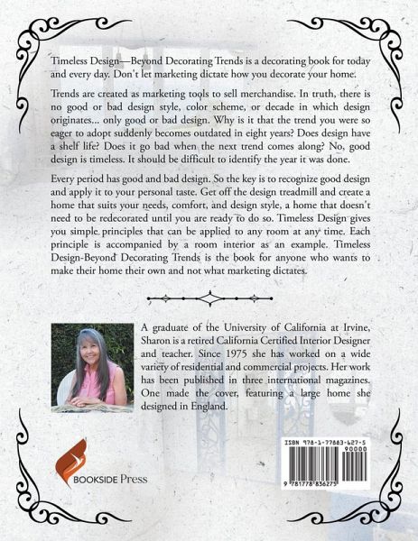 Timeless Design-Beyond Decorating Trends is a decorating book for today and every day. Don't let marketing dictate how you decorate your home. Trends are created as marketing tools to sell merchandise. In truth, there is no good or bad design style, color scheme, or decade in which design originates... only good or bad design. Why is it that the trend you were so eager to adopt suddenly becomes outdated in eight years? Does design have a shelf life? Does it go bad when the next trend comes along? No, good design is timeless. It should be difficult to identify the year it was done. Every period has good and bad design. So the key is to recognize good design and apply it to your personal taste. Get off the design treadmill and create a home that suits your needs, comfort, and design style, a home that doesn't need to be redecorated until you are ready to do so. Timeless Design gives you simple principles that can be applied to any room at any time. Each principle is accompanied by a room interior as an example. Timeless Design-Beyond Decorating Trends is the book for anyone who wants to make their home their own and not what marketing dictates.