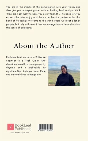 You are in the middle of the conversation with your friend, and they give you an inspiring idea without holding back and you think "How did I get lucky to have you as my friend?". This book lets you express the internal joy and rhythm our heart experiences for this bond of friendship! Welcome to the world where we meet a lot of people, but only with select few we manage to create and nurture this sense of belonging.