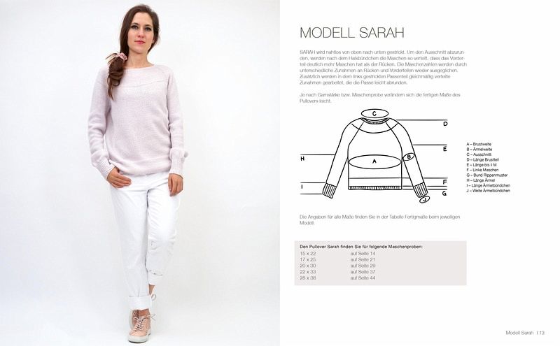 - Jedes Modell in je 5 Garnstärken, von Lauflänge 1.340m/100 g bis 160m/100g