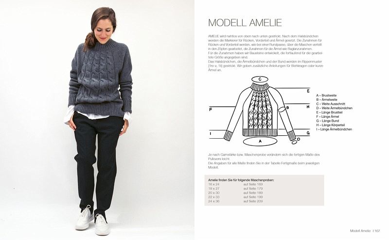 Regina Moessmer ist bekannt für ihre geradlinigen Designs. Besonders spannend an den Modellen in diesem Buch ist es, wie sehr sich die verwendete Garnstärke auf das Design auswirkt. Das Broken-Seed-Stitch-Muster von Modell Caspar wirkt mit dünnem Garn sehr fein und bringt in der dickeren Variante Struktur in den Pullover. Das Zopfmuster von Modell Leia ist für Anfänger:innen mit dem stärkeren Garn besonders leicht zu stricken, während Fortgeschrittene mit den feinen Zöpfen Freude haben.