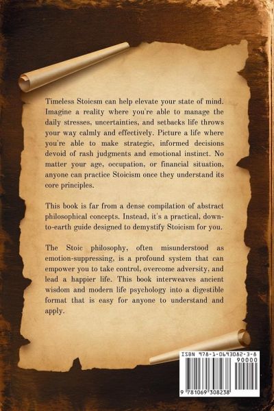 Unleash the power of the Stoic mind in just a matter of weeks, even if you've struggled with anxiety, stress, and unhappiness your whole life. Have you tried countless paths to improve your mental well-being, only to be left wanting more? You're not alone, and the revolutionary principles of Stoicism may be the secret ingredient you've been missing. Imagine a reality where you're able to manage the daily stresses, uncertainties, and setbacks life throws your way calmly and effectively. Picture a life where you're able to make strategic, informed decisions devoid of rash judgments and emotional instinct. No matter your age, occupation, or financial situation, anyone can practice Stoicism once they understand its core principles. Now, here's a glimpse of what you'll uncover inside: Step-by-step strategies for incorporating Stoicism into your everyday life with just a few minutes of practice each day Insightful exercises that boost your Stoic wisdom and help you apply this ancient philosophy in all life scenarios How cognitive-behavioral therapy (CBT) merges with Stoicism and how to use this knowledge to forge a grounded mindset How to find an oasis of peace in your turbulent life with proven Stoic practices Why understanding and incorporating Stoic dichotomy of control can change your life for the better The powerful tool of journaling inspired by Marcus Aurelius himself to instill and strengthen your Stoic beliefs ...and so much more! This book is far from a dense compilation of abstract philosophical concepts. Instead, it's a practical, down-to-earth guide designed to demystify Stoicism for you. The Stoic philosophy, often misunderstood as emotion-suppressing, is a profound system that can empower you to take control, overcome adversity, and lead a happier life. This book interweaves ancient wisdom and modern life psychology into a digestible format that is easy for anyone to understand and apply.