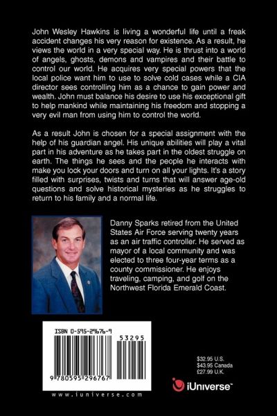 John Wesley Hawkins is living a wonderful life until a freak accident changes his very reason for existence. As a result, he views the world in a very special way. He is thrust into a world of angels, ghosts, demons and vampires and their battle to control our world. He acquires very special powers that the local police want him to use to solve cold cases while a CIA director sees controlling him as a chance to gain power and wealth. John must balance his desire to use his exceptional gift to help mankind while maintaining his freedom and stopping a very evil man from using him to control the world. As a result John is chosen for a special assignment with the help of his guardian angel. His unique abilities will play a vital part in his adventure as he takes part in the oldest struggle on earth. The things he sees and the people he interacts with make you lock your doors and turn on all your lights. It's a story filled with surprises, twists and turns that will answer age-old questions and solve historical mysteries as he struggles to return to his family and a normal life.