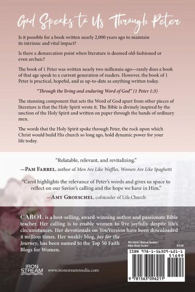God Speaks to Us Through Peter Is it possible for a book written nearly 2,000 years ago to maintain its intrinsic and vital impact? Is there a demarcation point when literature is deemed old-fashioned or even archaic? The book of 1 Peter was written nearly two millennia ago--rarely does a book of that age speak to a current generation of readers. However, the book of 1 Peter is practical, hopeful, and as up-to-date as anything written today. "Through the living and enduring Word of God" (1 Peter 1:3) The stunning component that sets the Word of God apart from other pieces of literature is that the Holy Spirit wrote it. The Bible is divinely inspired by the unction of the Holy Spirit and written on paper through the hands of ordinary men. The words that the Holy Spirit spoke through Peter, the rock upon which Christ would build His church, so long ago hold dynamic power for your life today.