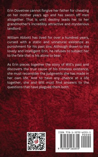 Erin Dovetree cannot forgive her father for cheating on her mother years ago and has sworn off men altogether. That is until destiny leads her to her grandmother's incredibly attractive and mysterious landlord. William Abbott has lived for over a hundred years, cursed with a static and unnatural existence as punishment for his past sins. Although drawn to the lovely and intelligent Erin, he refuses to subject her to the fate that is his alone to bear. As Erin pieces together the story of Will's past and discovers the true cause of his timeless existence, she must reconsider the judgments she has made in her own life. And to have any chance at a life together, she and Will must find answers to the questions that have plagued them both.