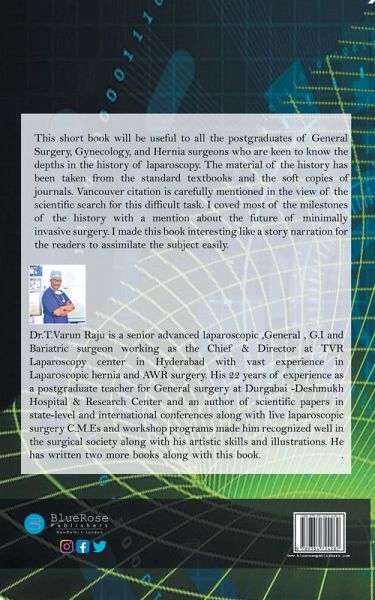 Timeline history of Laparoscopy and hernia surgery is a compilation of all the chronological evolutionary events of laparoscopic surgery. It's a very useful book to the post-graduate students in General surgery and the minimally invasive surgeons of the various specialties. The book is written in a style of an interesting story so that, the readers will remember the major discoveries in a simpler manner. This book is written with adopting the scientific Vancouver fashion so that proper evidence bassed material is given to the readers for their confidence of authenticity of the facts. I am sure this book will be useful to all the national and international surgeons who are practicing laparoscopic surgery in their specialties.