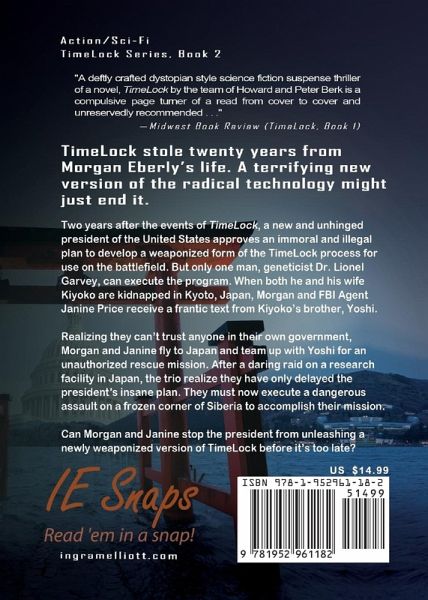 TimeLock stole twenty years from Morgan Eberly's life. A terrifying new version of the radical technology might just end it. Two years after the events of TimeLock, a new and unhinged president of the United States approves an immoral and illegal plan to develop a weaponized form of the TimeLock process for use on the battlefield. But only one man, geneticist Dr. Lionel Garvey, can execute the program. When both he and his wife Kiyoko are kidnapped in Kyoto, Japan, Morgan and FBI Agent Janine Price receive a frantic text from Kiyoko's brother, Yoshi. Realizing they can't trust anyone in their own government, Morgan and Janine fly to Japan and team up with Yoshi for an unauthorized rescue mission. After a daring raid of a research facility in Japan, the trio realize they have only delayed the president's insane plan. They must now execute a dangerous assault on a frozen corner of Siberia to accomplish their mission. Can Morgan and Janine stop the president from unleashing a newly weaponized version of TimeLock before it's too late?