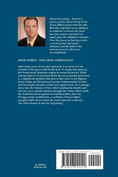 Book Three - The Aryis Chronicles. After many years of war and upheaval, it seemed as if the wounds of the past could finally heal. To begin that process, the Protectorate Authority rushes to crown its heroes. Chief among those to be honored, Daric Konan is quickly promoted to a significant position that places him close to the highest levels within the Protectorate system. Unfortunately for him and his people, the past would once again reach out to plunge them into the violence of war. After sending his friends and new love on a suicide mission through the vortex, Daric leads the Authority forces against an indestructible, alien foe. Facing certain annihilation, a coalition of forces fights savagely while those across the vortex pray for a miracle. The final chapter is just the beginning...