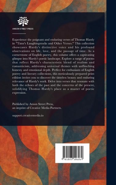 Experience the poignant and enduring verses of Thomas Hardy in "Time's Laughingstocks and Other Verses." This collection showcases Hardy's distinctive voice and his profound observations on life, love, and the passage of time. As a cornerstone of English poetry, this volume offers a captivating glimpse into Hardy's poetic landscape. Explore a range of poems that reflect Hardy's characteristic blend of realism and romanticism, addressing universal themes with unflinching honesty and emotional depth. Perfect for enthusiasts of English poetry and literary collections, this meticulously prepared print edition invites you to discover the timeless beauty and enduring relevance of Hardy's work. Delve into verses that resonate with both the echoes of the past and the concerns of the present, solidifying Thomas Hardy's place as a master of poetic expression. This work has been selected by scholars as being culturally important, and is part of the knowledge base of civilization as we know it. This work is in the public domain in the United States of America, and possibly other nations. Within the United States, you may freely copy and distribute this work, as no entity (individual or corporate) has a copyright on the body of the work. Scholars believe, and we concur, that this work is important enough to be preserved, reproduced, and made generally available to the public. We appreciate your support of the preservation process, and thank you for being an important part of keeping this knowledge alive and relevant.