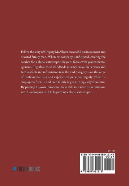 Follow the story of Gregory McAllister, successful business owner and devoted family man. When his company is infiltrated, creating the catalyst for a global catastrophe, he joins forces with governmental agencies. Together, their worldwide journey encounters twists and turns as facts and information take the lead. Gregory is on the verge of professional ruin and experiences personal tragedy while his employees, friends, and even family begin turning away from him. By proving his own innocence, he is able to restore his reputation, save his company, and help prevent a global catastrophe.
