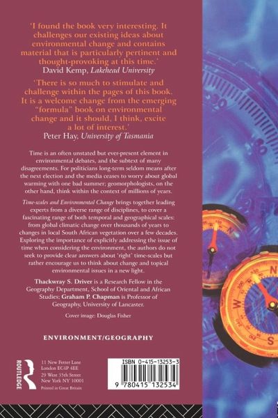In the context of environmental change there's been little discussion about what is actually meant by "short-" or "long-term"; yet an understanding of timescales of change and how they relate is crucial to truly responsible environmentalism. To physical geographeers the last 10,000 years is recent; to politicians, five-year environmental problems that can't be solved before the next election year are far beyond their horizons. "Timescales of Environmental Change" brings together impressive contributors from across the physical and social sciences, offering a fascinating range of perspectives. Original papers, from a recent Conference at SOAS are rewritten with the book's introductory and concluding chapters as a base, and timely contributions have been added. A focussed book is the result.