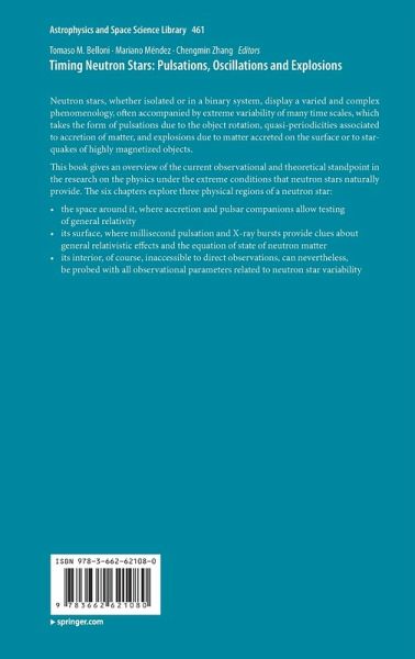 This book gives an overview of the current observational and theoretical standpoint in the research on the physics under the extreme conditions that neutron stars naturally provide. The six chapters explore three physical regions of a neutron star: