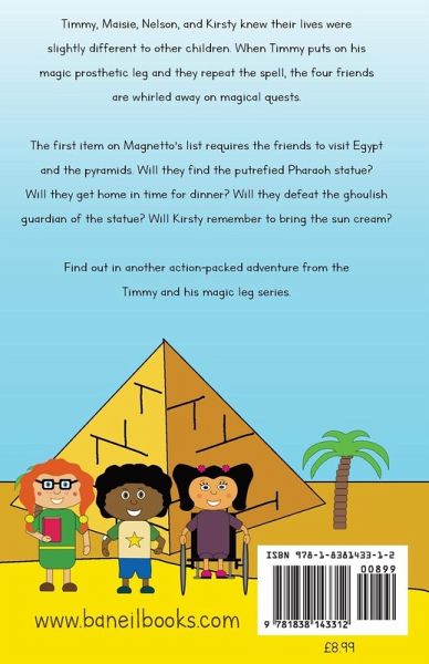 Timmy, Maisie, Nelson, and Kirsty knew their lives were slightly different to other children. When Timmy puts on his magic prosthetic leg and they repeat the spell, the four friends are whirled away on magical quests .The first item on Magnetto's list requires the friends to visit Egypt and the pyramids. Will they find the putrefied Pharaoh statue? Will they get home in time for dinner? Will they defeat the ghoulish guardian of the statue? Will Kirsty remember to bring the sun cream? Find out in another action-packed adventure from the Timmy and his magic leg series.