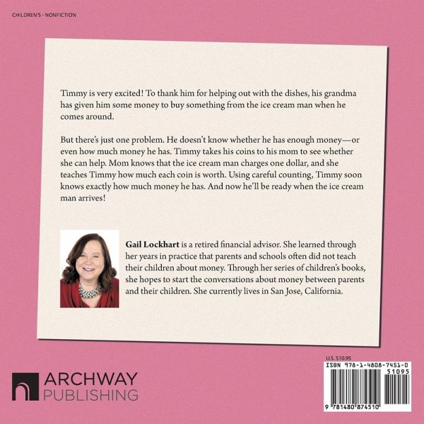Timmy is very excited! To thank him for helping out with the dishes, his grandma has given him some money to buy something from the ice cream man when he comes around. But there's just one problem. He doesn't know whether he has enough money--or even how much money he has. Timmy takes his coins to his mom to see whether she can help. Mom knows that the ice cream man charges one dollar, and she teaches Timmy how much each coin is worth. Using careful counting, Timmy soon knows exactly how much money he has. And now he'll be ready when the ice cream man arrives!