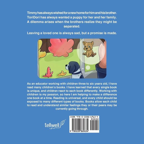 Timmy has always wished for a new home for him and his brother. ToriDori has always wanted a puppy for her and her family. A dilemma arises when the brothers realize they might be separated. Leaving a loved one is always sad, but a promise is made.