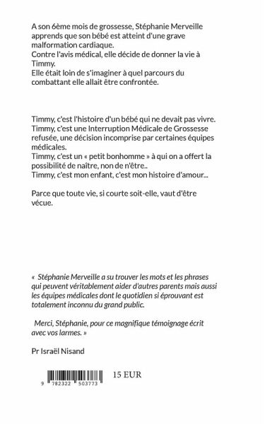 A son 6ème mois de grossesse, Stéphanie Merveille apprends que son bébé est atteint d'une grave malformation cardiaque.Contre l'avis médical, elle décide de donner la vie à Timmy.Elle était loin de s'imaginer à quel parcours du combattant elle allait être confrontée.