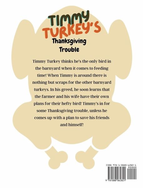 Timmy Turkey thinks he's the only bird in the barnyard when it comes to feeding time! When Timmy is around there is nothing but scraps for the other barnyard turkeys. In his greed, he soon learns that the farmer and his wife have their own plans for their hefty bird! Timmy's in for some Thanksgiving trouble, unless he comes up with a plan to save his friends and himself!
