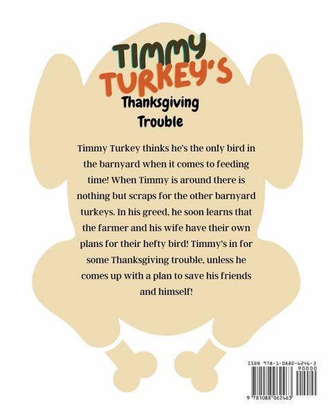 Timmy Turkey thinks he's the only bird in the barnyard when it comes to feeding time! When Timmy is around there is nothing but scraps for the other barnyard turkeys. In his greed, he soon learns that the farmer and his wife have their own plans for their hefty bird! Timmy's in for some Thanksgiving trouble, unless he comes up with a plan to save his friends and himself!