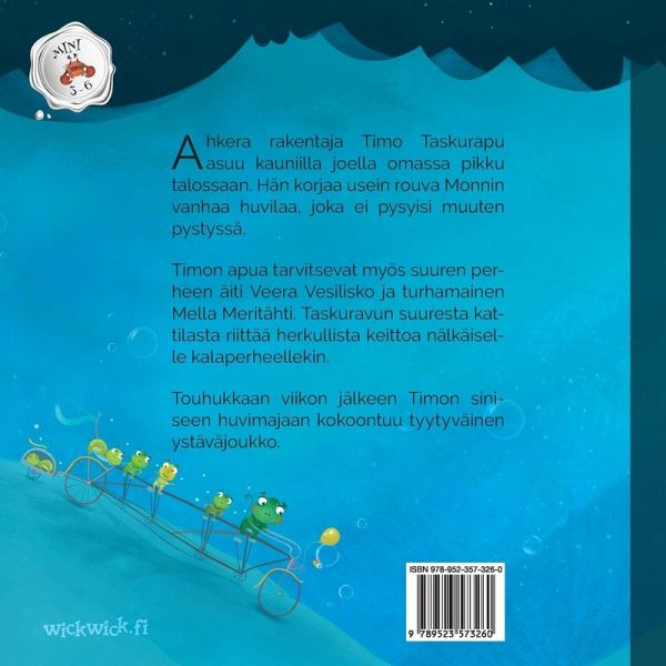 Colin the Crab, a hardworking handyman, lives by a beautiful river. He often fixes Ms. Catfish's old villa, which would fall apart without his repairs. Norma the Newt and Sally the Starfish constantly need Colin's help too. On top of that, a hungry fish family hopes the crab will share his delicious soup with them. After a busy week, a happy group of friends gets together at Colin's blue garden pavilion.